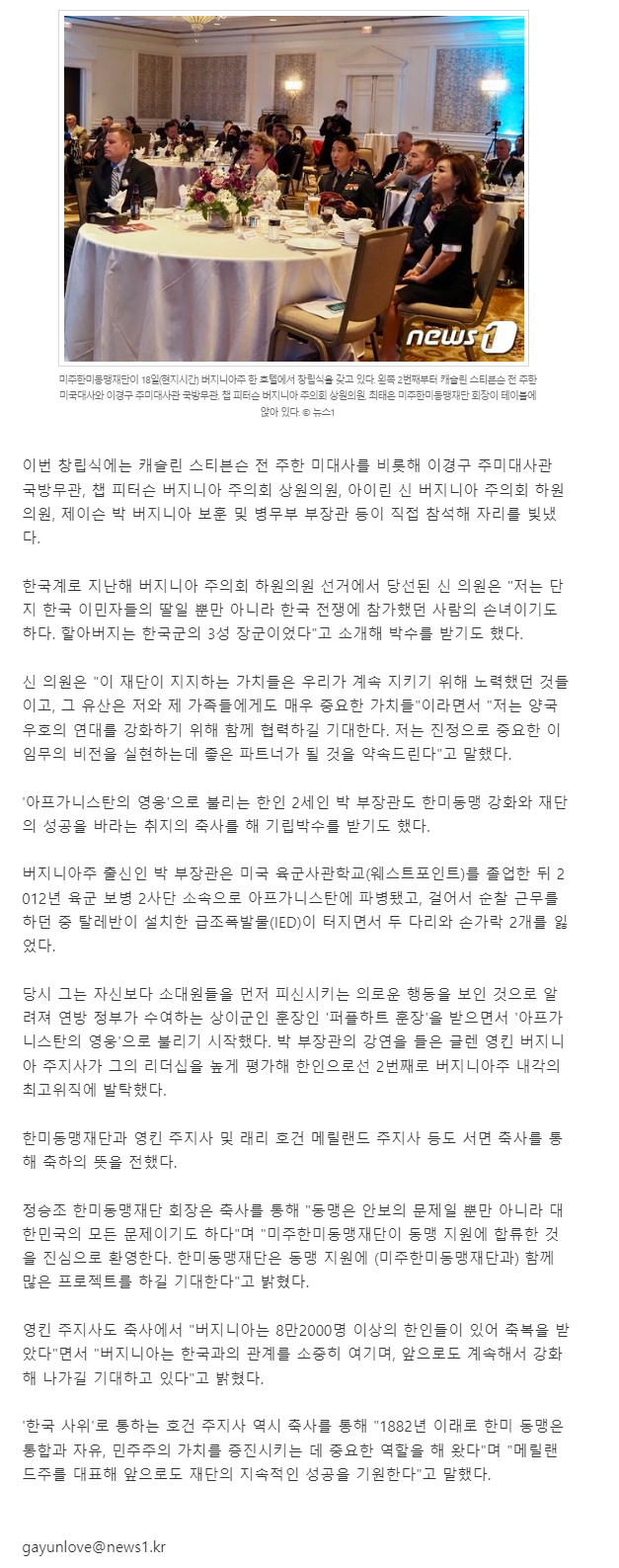 미주한미동맹재단, 성황리 출범…"역사교육 통해 한미동맹 강화 기여"