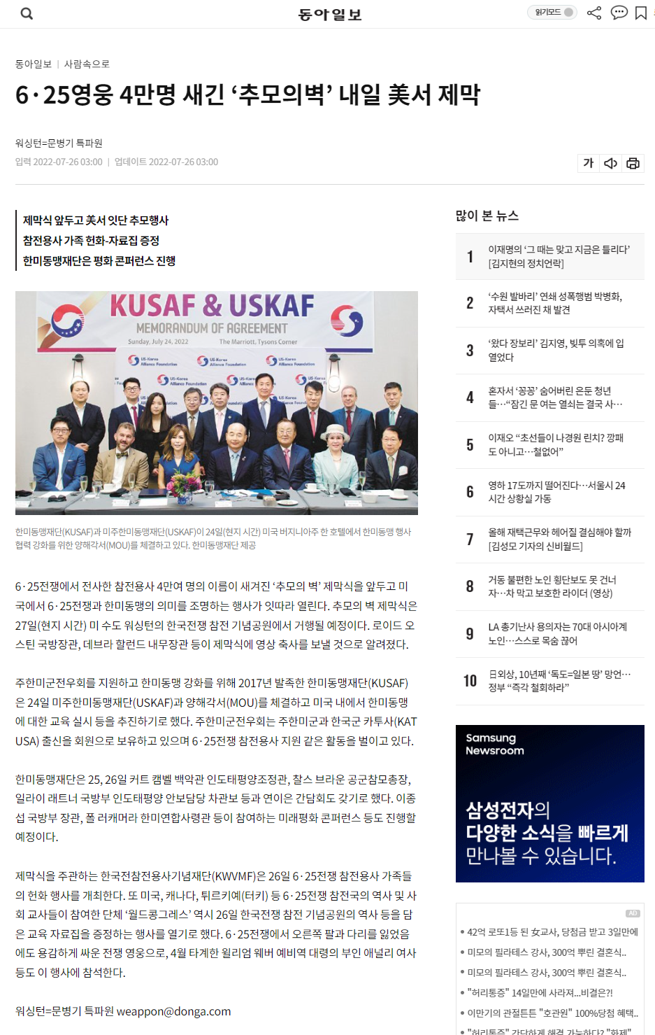 6·25영웅 4만명 새긴 ‘추모의벽’ 내일 美서 제막
